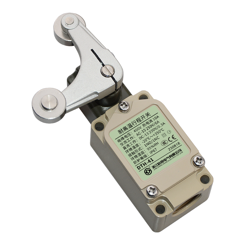 • DTH-41耐高溫行程開關(guān),雙輪·叉式·擺桿·鎖定型、通用直立型,長壽命2回路限位開關(guān)。適用于鋼鐵、焦化、電廠、紡織、醫(yī)療、化工、鋁材、塑料、玻璃、輪胎等高溫加工機(jī)械設(shè)備,作位移電路通斷信號(hào)檢測(cè)控制。