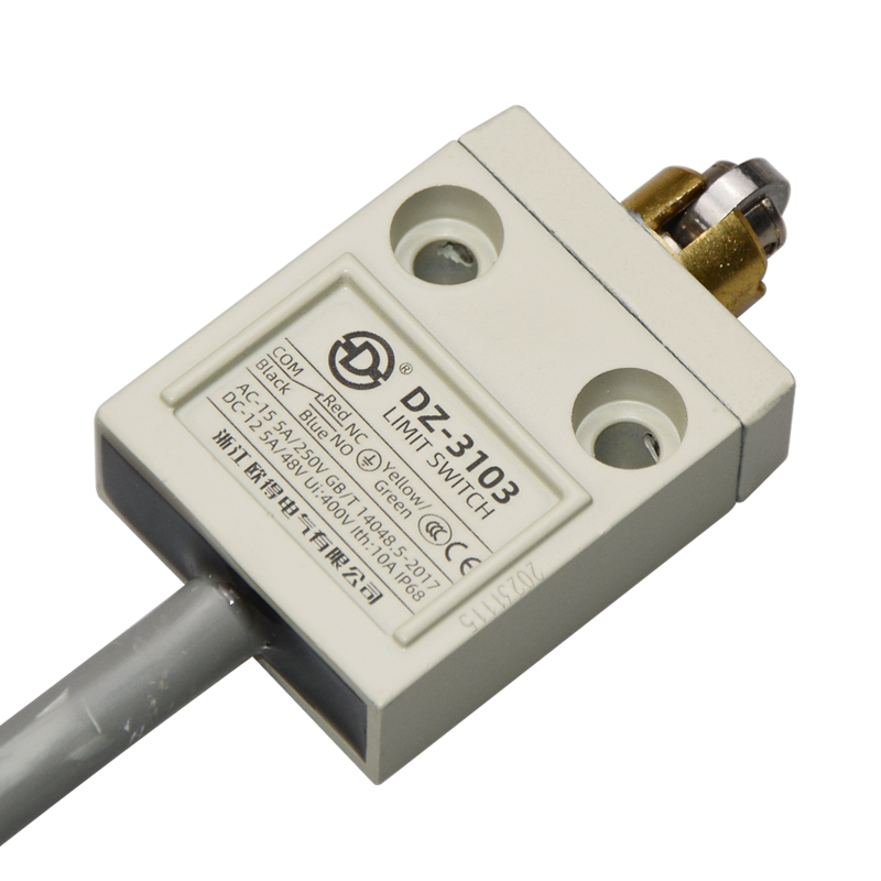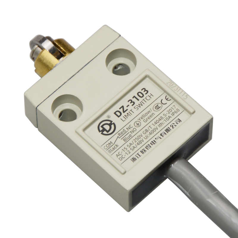 • DZ-3103防水行程開關(guān),橫向滾輪柱塞式,通用直立型,小型、薄形、IP68防護(hù)等級,樹脂與耐油軟線融合牢固,高度密封性兼具的緊湊型限位開關(guān)。適用于積水、潮濕環(huán)境下的機(jī)械設(shè)備,作位移電路通斷信號檢測控制。