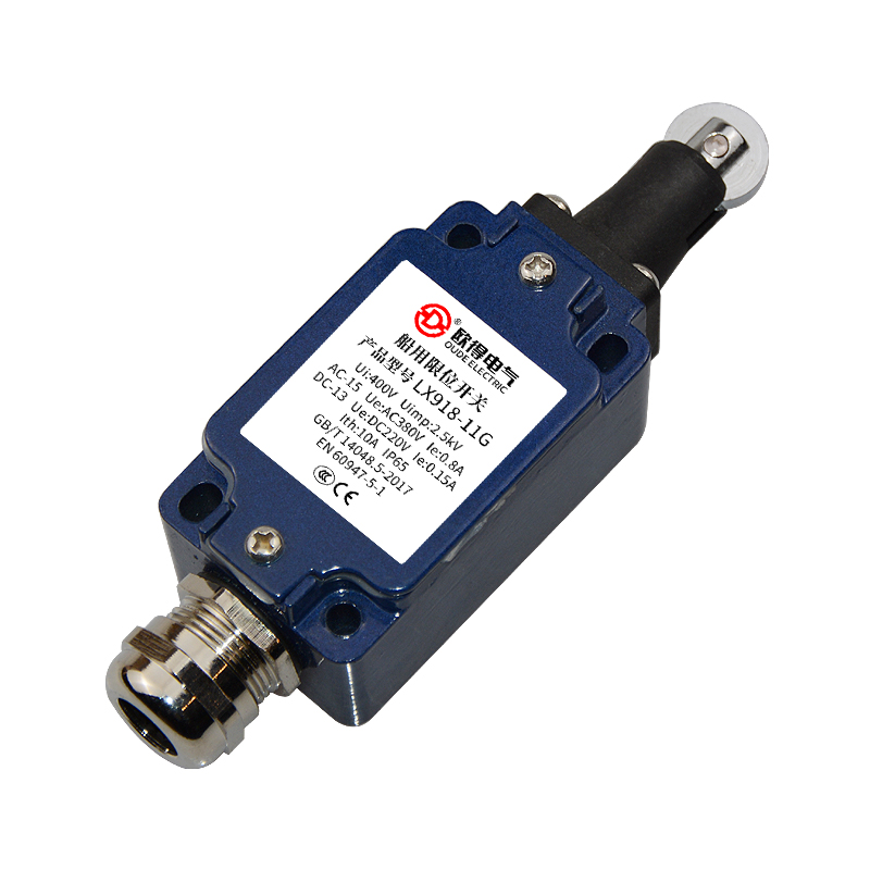 • LX918-11G船用限位開關(guān) 滾輪柱塞式 歐得行程開關(guān)。額定絕緣電壓400伏,發(fā)熱電流10安培,工作電壓電流交流380伏、0.8安培,直流220伏、0.15安培,防護(hù)等級IP65。適用于船舶、海洋平臺、港口碼頭等各種機(jī)械設(shè)備在電器設(shè)備控制回路中能限制行程的限位開關(guān)。