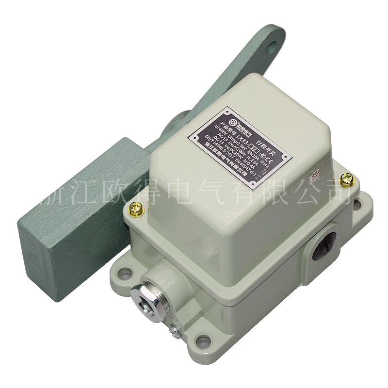 • LX33-32起重機(jī)用行程開關(guān) 重錘式 鑄鐵手臂 LX33-31 歐得限位開關(guān)。額定絕緣電壓400伏,發(fā)熱電流10安培,工作電壓電流交流380伏、2.6安培,直流220伏、0.4安培,防護(hù)等級(jí)IP44。作為起重機(jī)平移機(jī)構(gòu)或起升機(jī)構(gòu)的行程限制及終端保護(hù)。