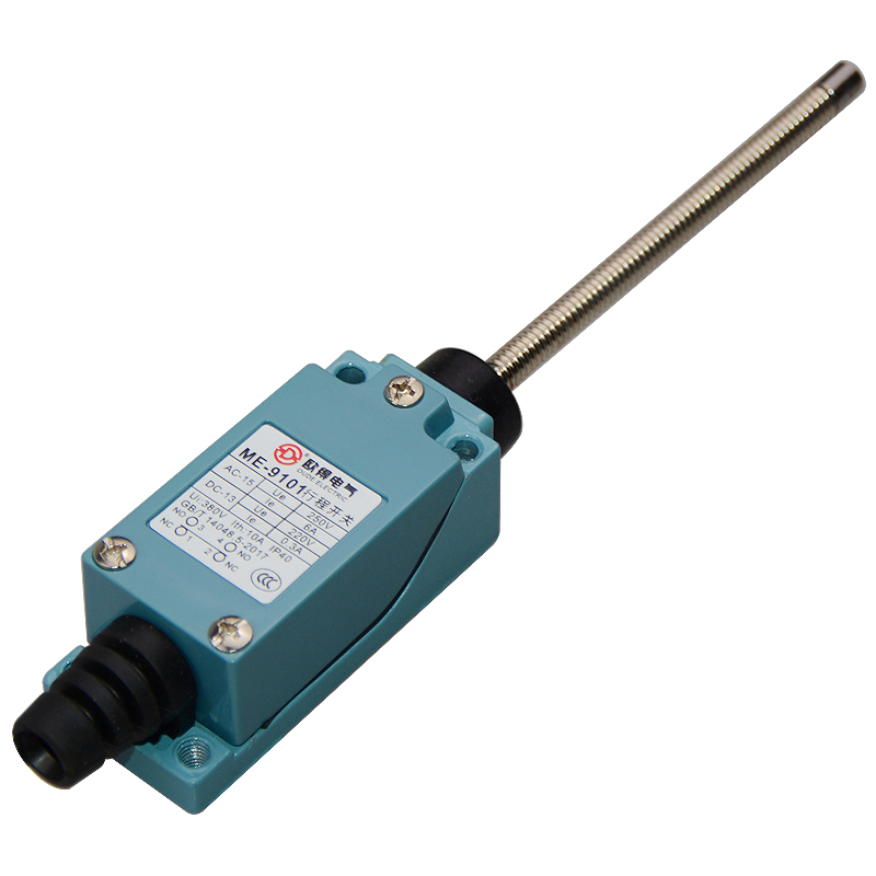 • ME-9101行程開關(guān),彈簧棒萬向式,2回路型(1常開1常閉)限位開關(guān)。絕緣電壓380伏,耐沖擊電壓2.5kV,發(fā)熱電流10安培,交流工作電壓250伏、電流6安培,直流工作電壓220伏、電流0.3安培,防水等級IP40(安裝后)。產(chǎn)品標(biāo)準(zhǔn)和技術(shù)要求 GB/T14048.5-2017。